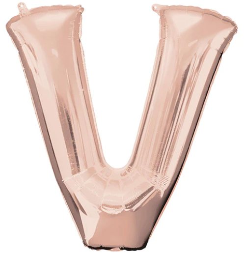 Letter V Helium Filled Giant Rose Gold Balloon