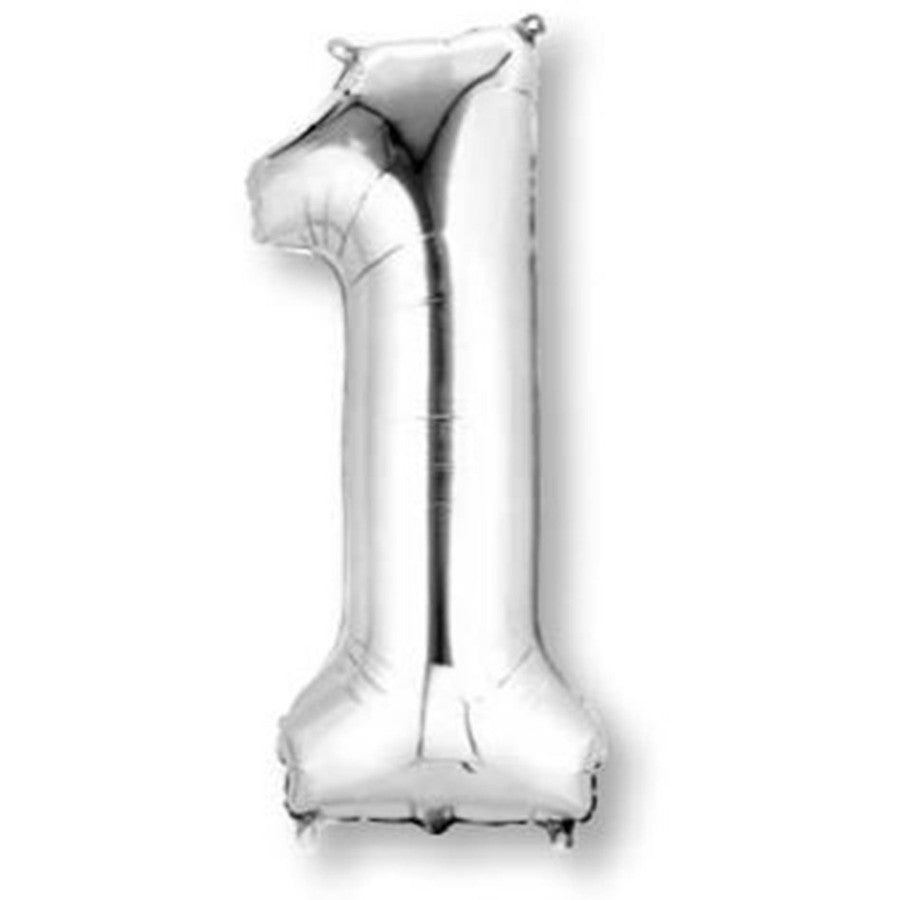 Number 1 Super Shape Balloon 86cm (Silver) Inflated