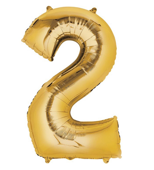 Number 2 Super Shape Balloon 86cm (Gold) Inflated