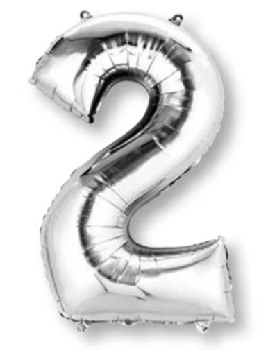 Number 2 Super Shape Balloon 86cm (Silver) Inflated