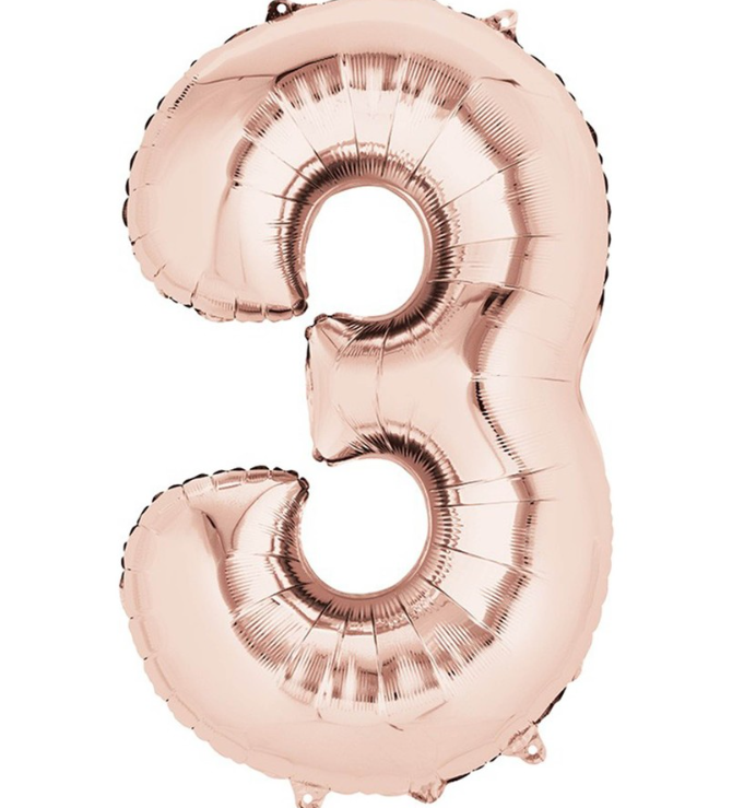 Number 3 Super Shape Balloon 86cm (rose-gold) Inflated