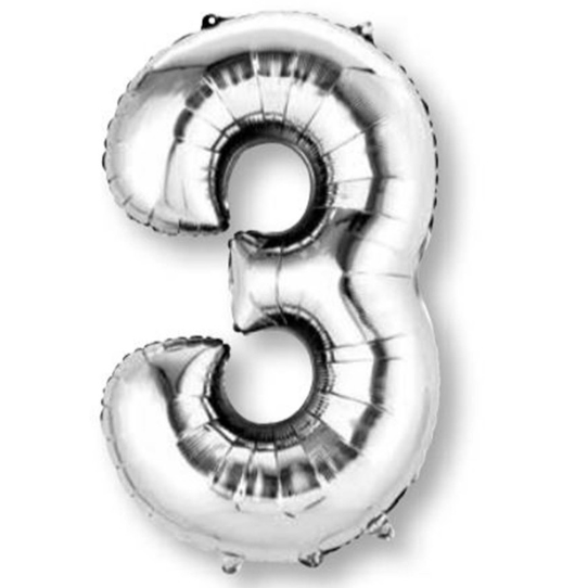 Number 3 Super Shape Balloon 86cm (silver) Inflated