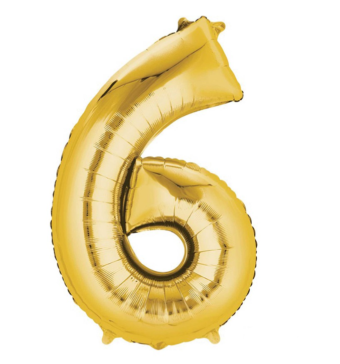 Number 6 Super Shape Balloon 86cm (Gold) Inflated