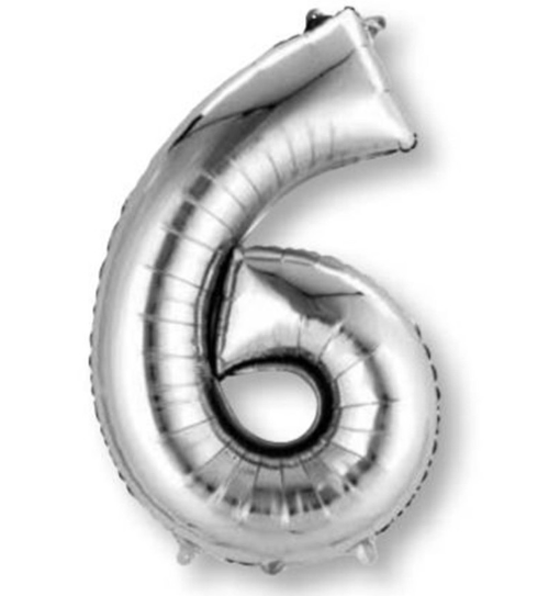 Number 6 Super Shape Balloon 86cm (silver) Inflated