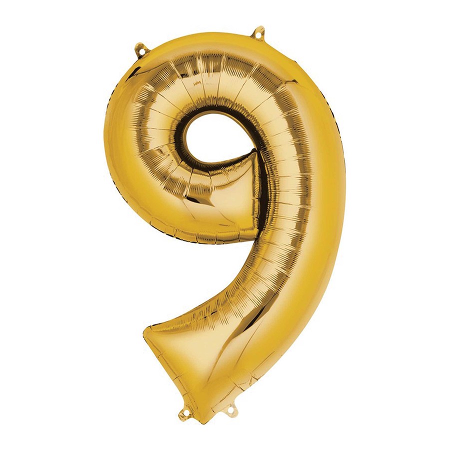 Number 9 Super Shape Balloon 86cm (Gold) Inflated
