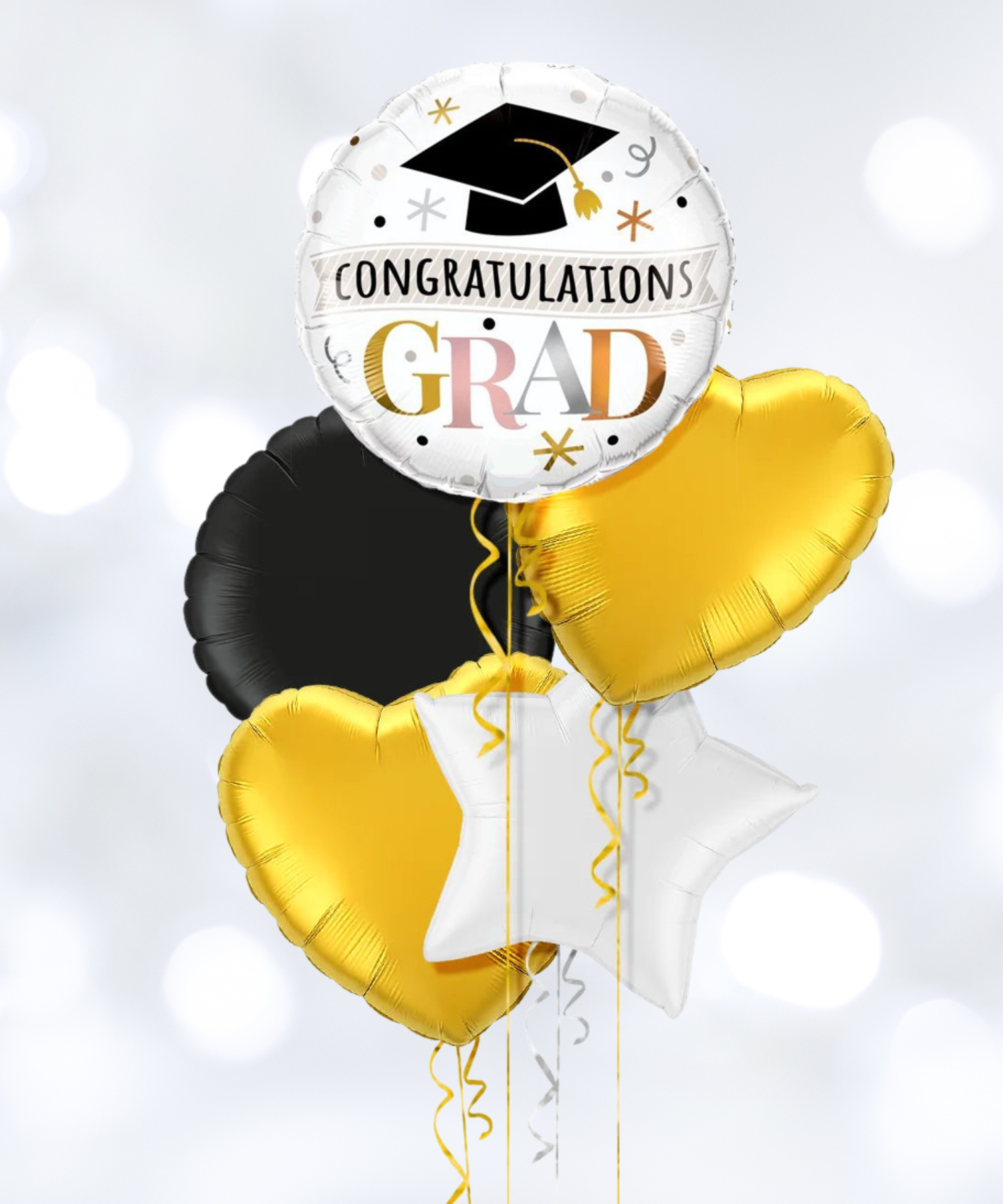 生日气球花束 [大银色数字,金色、黑色和银色气球]