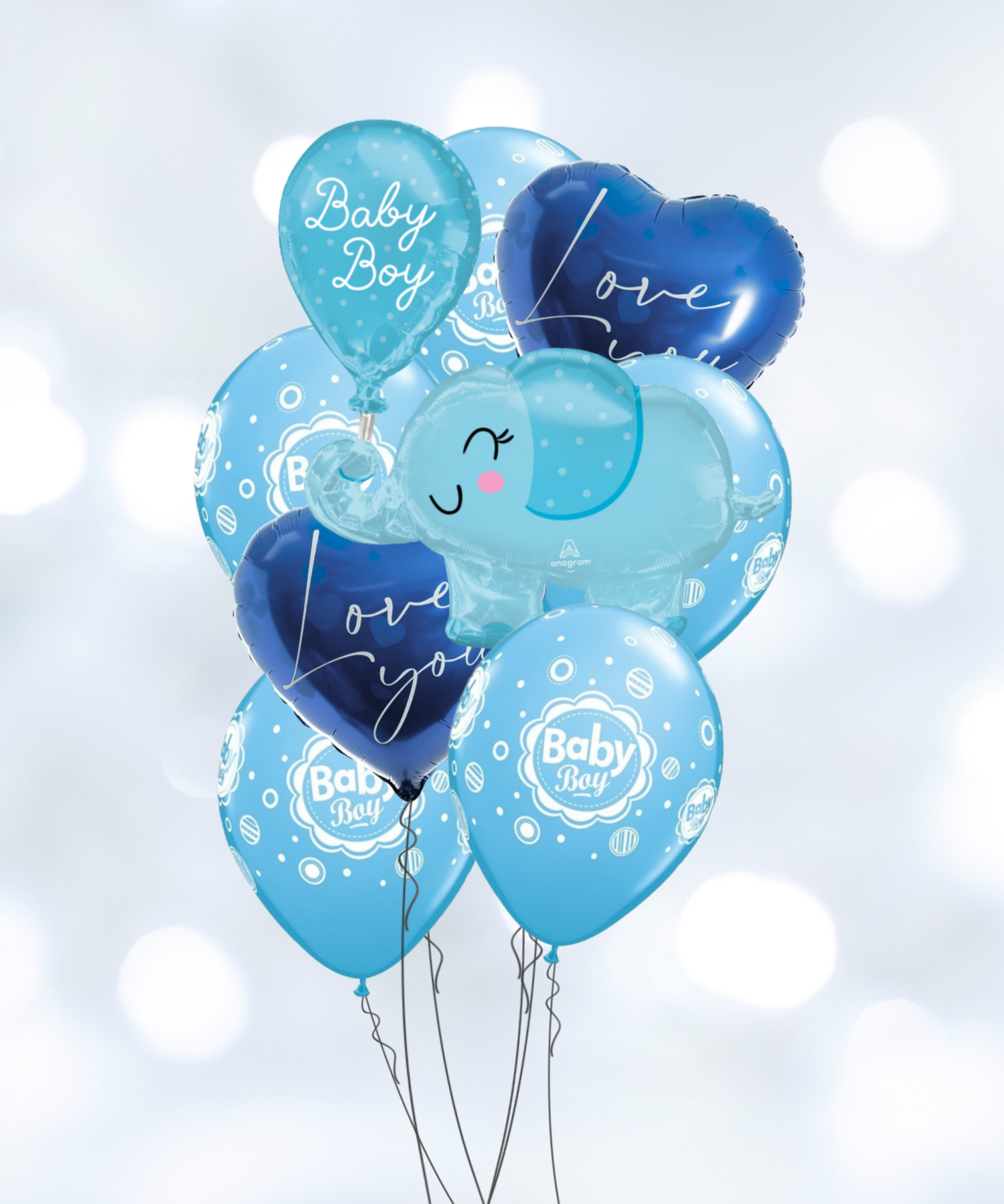 用这款蓝色婴儿送礼会气球花束点亮您的庆祝活动!珍贵的气球花束包括一个大型蓝色“男婴”气球作为中心装饰,以及 6 个带有独特星光设计的匹配圆形气球。非常适合婴儿送礼会庆祝活动!