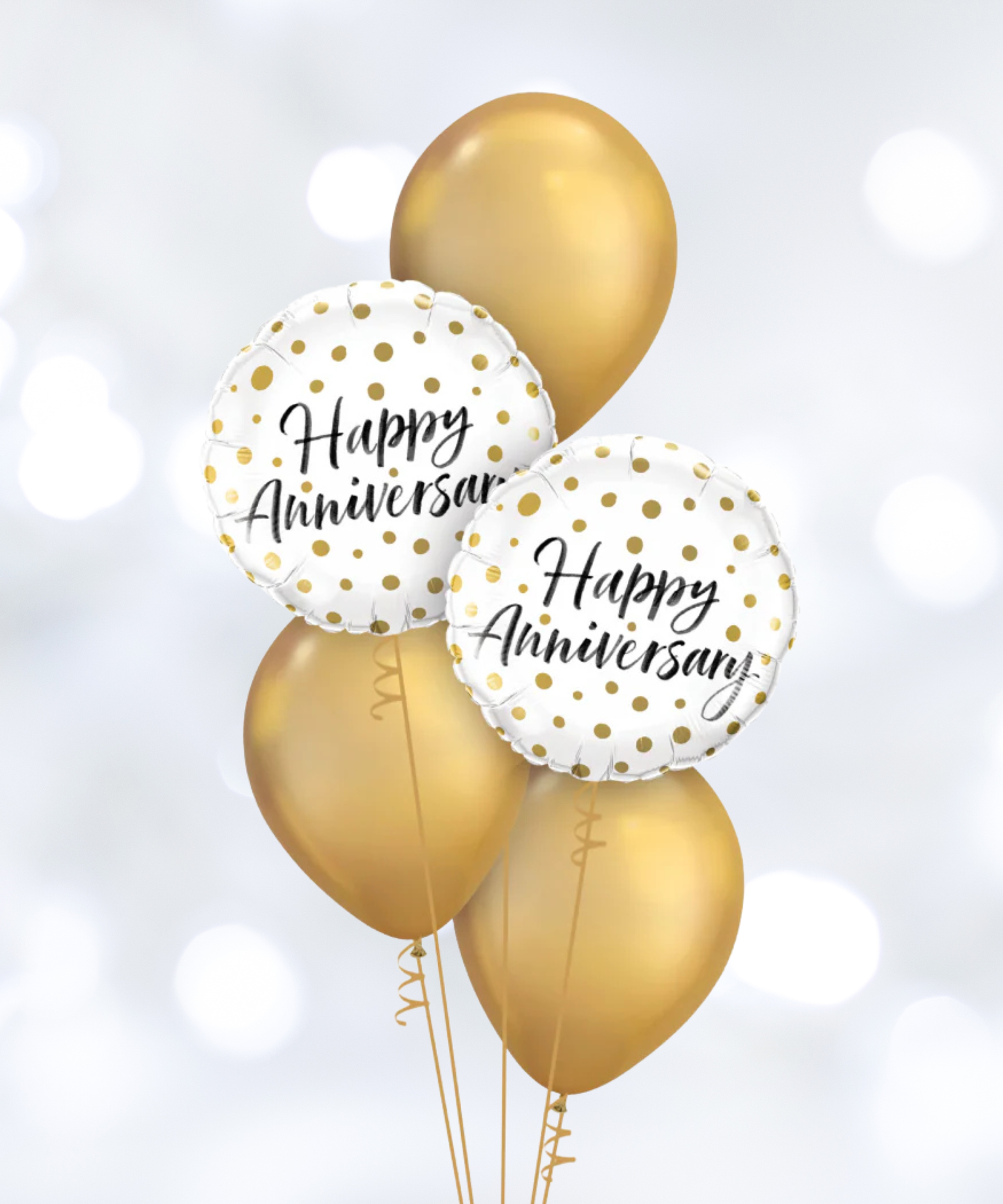用这款周年快乐气球花束,在重要的日子俘获他们的心!这款铝箔气球呈圆形,银色背景上印有“周年快乐”字样。3 个金色气球为这款周年装饰锦上添花。在周年纪念日,将其作为周年纪念礼物送给您所爱的人吧!