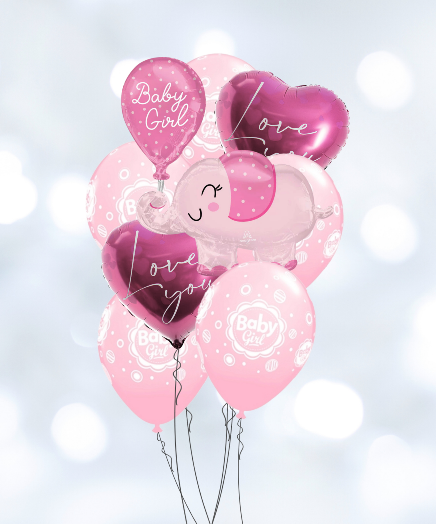 用这款粉色女婴沐浴气球花束点亮您的庆祝活动!珍贵的气球花束包括一个大号粉色“女婴”气球和大号粉色“LOVE”气球作为中心装饰,以及 5 个带有独特星光设计的匹配圆形气球。非常适合婴儿沐浴庆祝活动!